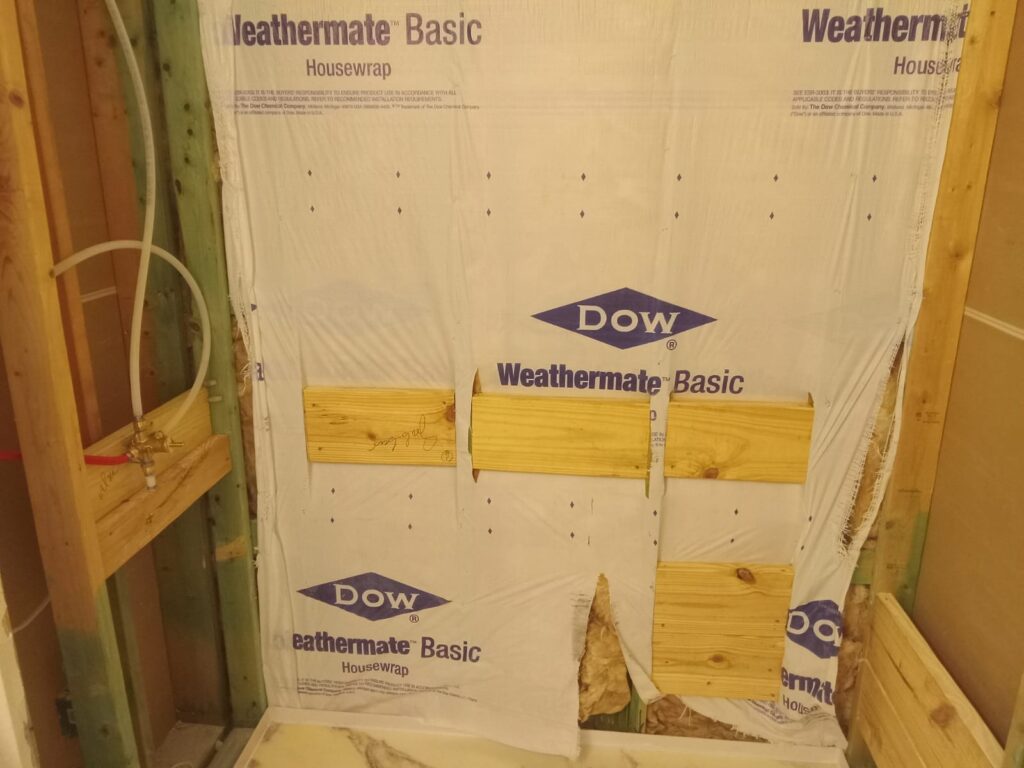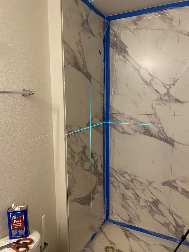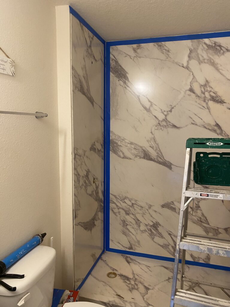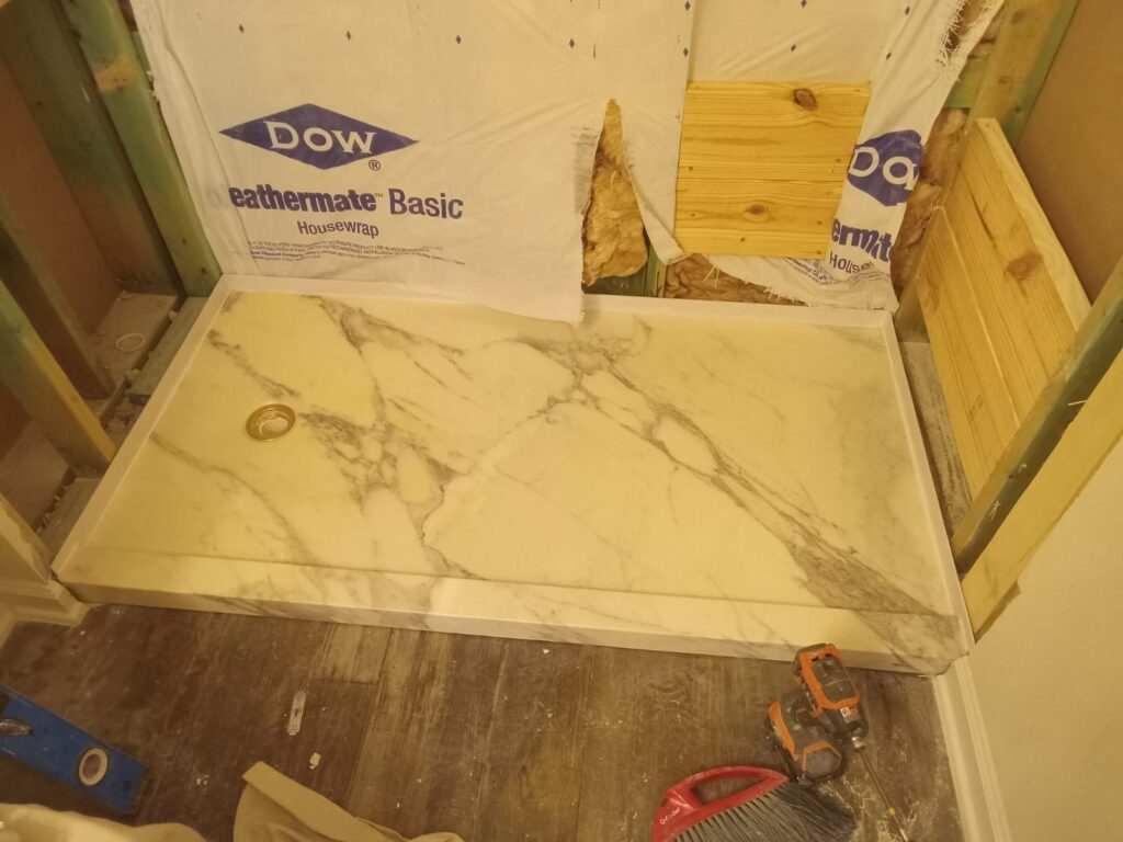 - installation of a 3-Wall Acrylic Wetspace with Curtain Rod, providing a clean and waterproof surface.